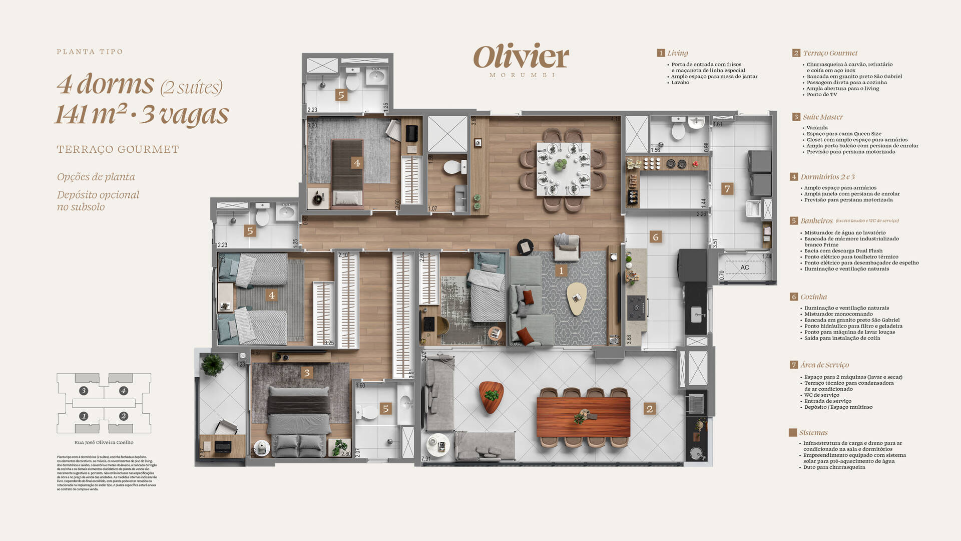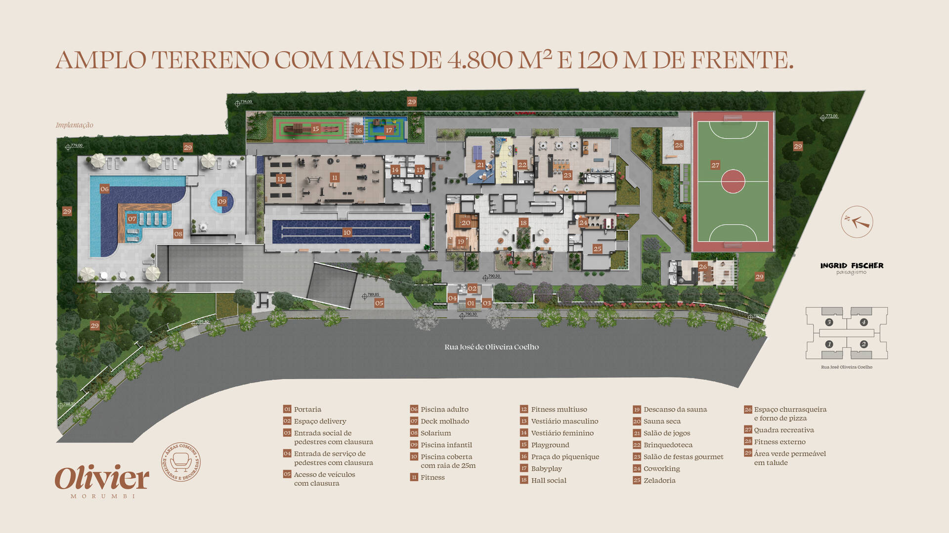 O Condomínio será Exclusivo, com os mesmos itens de um Resort, contando até com Piscina Coberta e Aquecida. Um terreno com mais de 4.800m², que fica no ponto mais alto da rua, com vistas privilegiadas dos apartamentos.