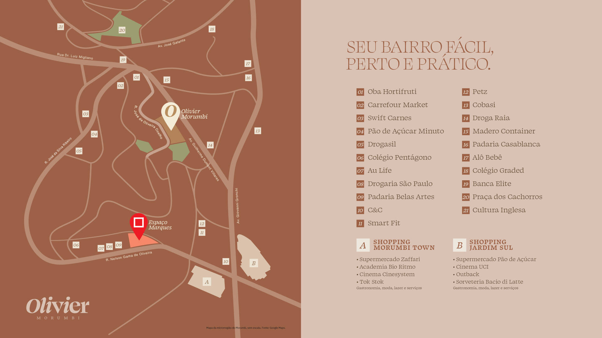 Fica próximo à Avenida Guilherme Dumont Villares, e à apenas 200 metros do Shopping Morumbi Town e Jardim Sul. Conta com uma infraestrutura completa de Comércio e Lazer próximo. No Bairro conta com ótimos colégios conceituados, como: Pentágono, Graded School, Santo Américo e Porto Seguro.